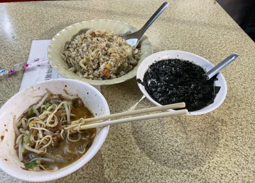 在一素食摊点了炒饭,炸酱面和紫菜汤