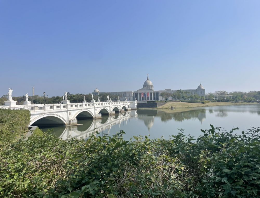 出了台南,不久就见前方有一占地面积相当大的,园林修饰整齐漂亮,看似公园的一个地方。本来没想停留。但又一想今天的路程不长,时间安排较松动,不妨去看看。于是我掉头,过了马路,来参观一下这巨大的,山寨欧式建筑的山寨。后来一查,原来是许文龙的。