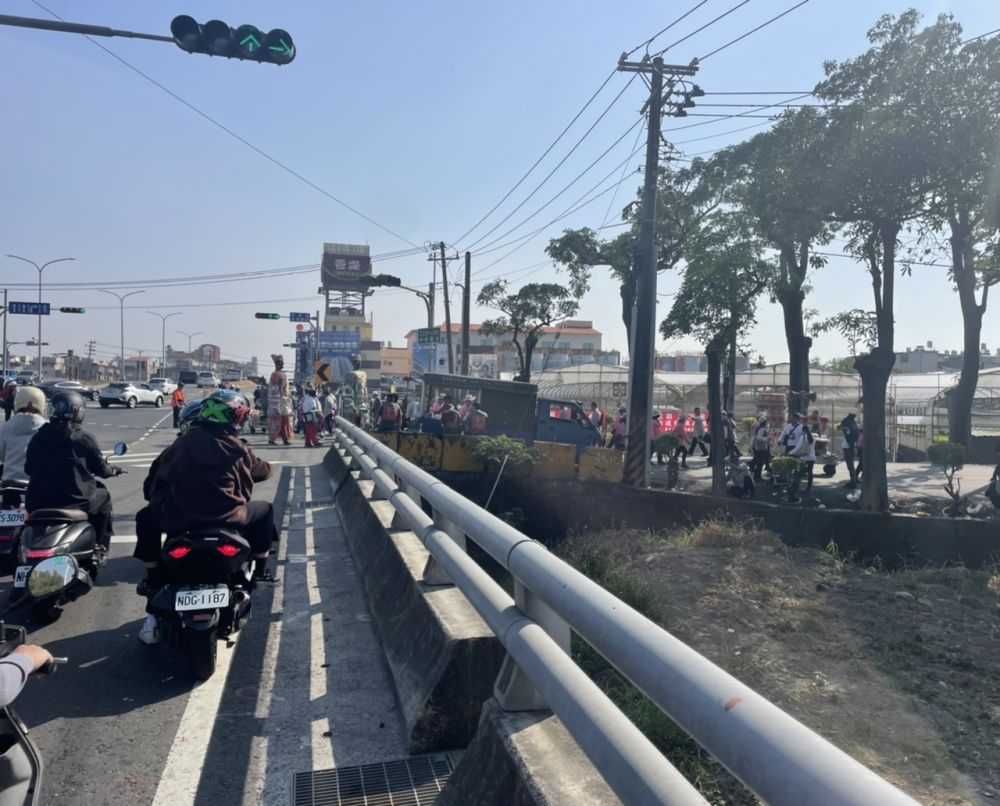 前面游行队伍使交通暂时中断