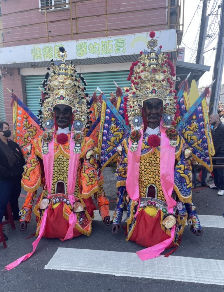 其中一群抬两个着神鬼模样的塑像