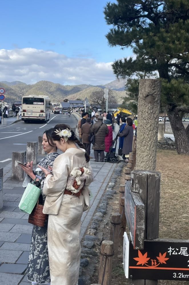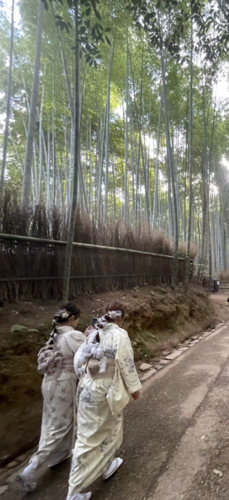吃完出来竹林走走消化一下,碰上两位和服美女