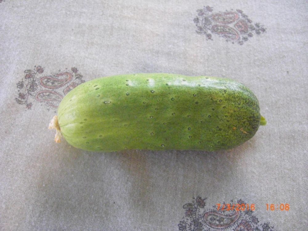 朋友前两年给的黄瓜籽,第一次见觉得长得这么老怎么吃,结果一试发现它是我吃过的最甜的黄瓜,象水果。今天收获了第一个,几口就吃完了!