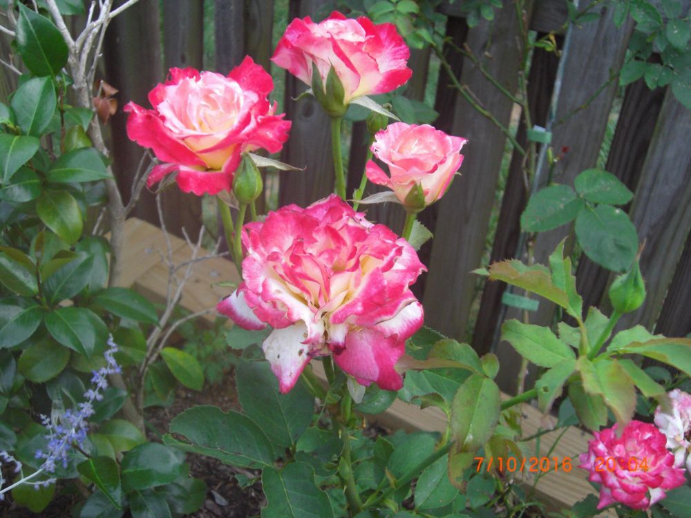 一棵double delight上同时开了四朵,真让人爱