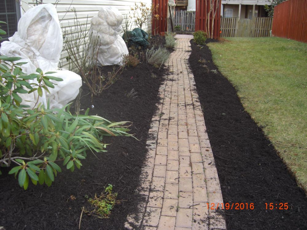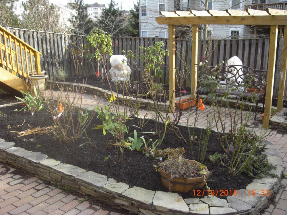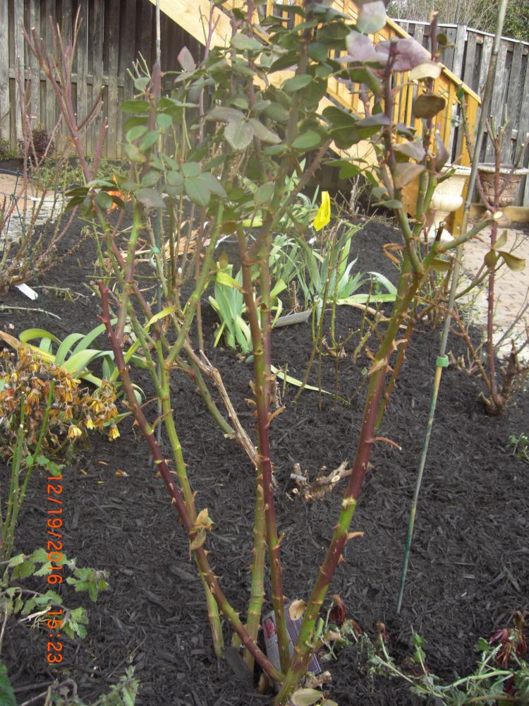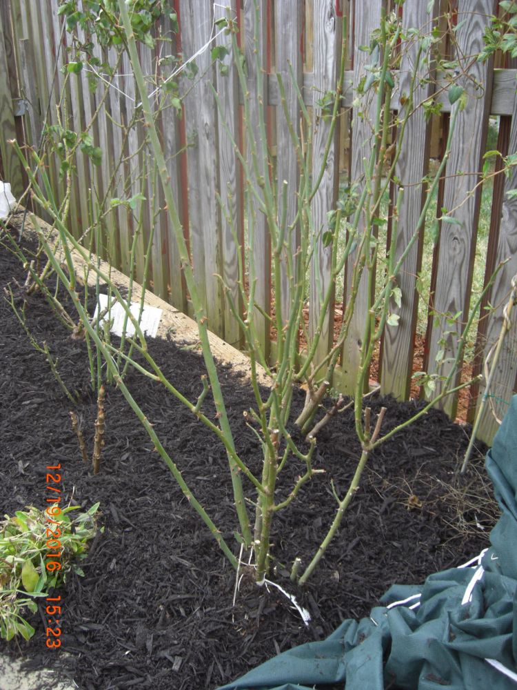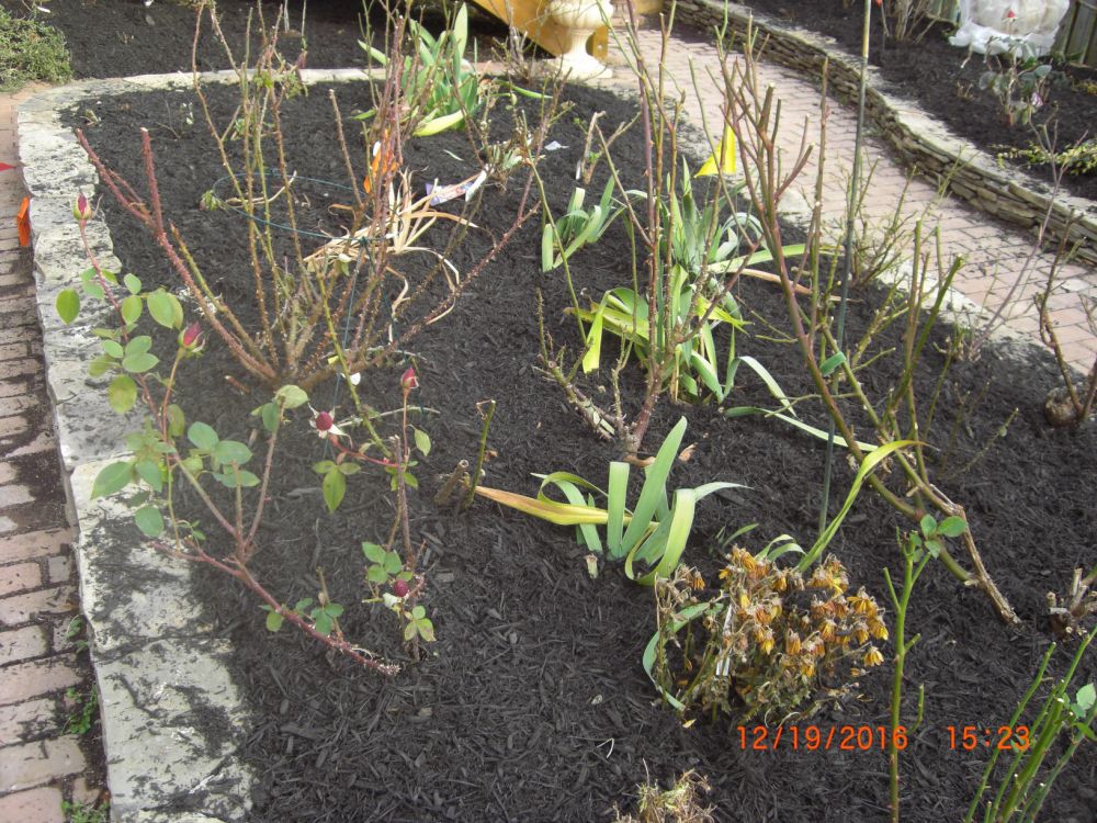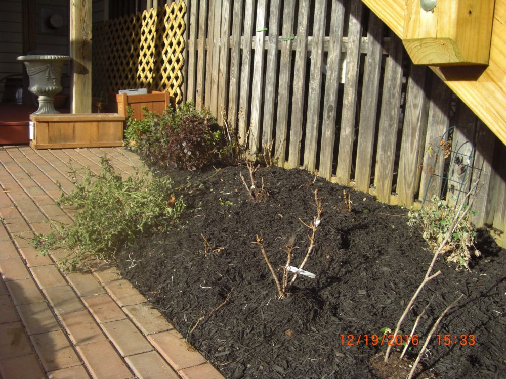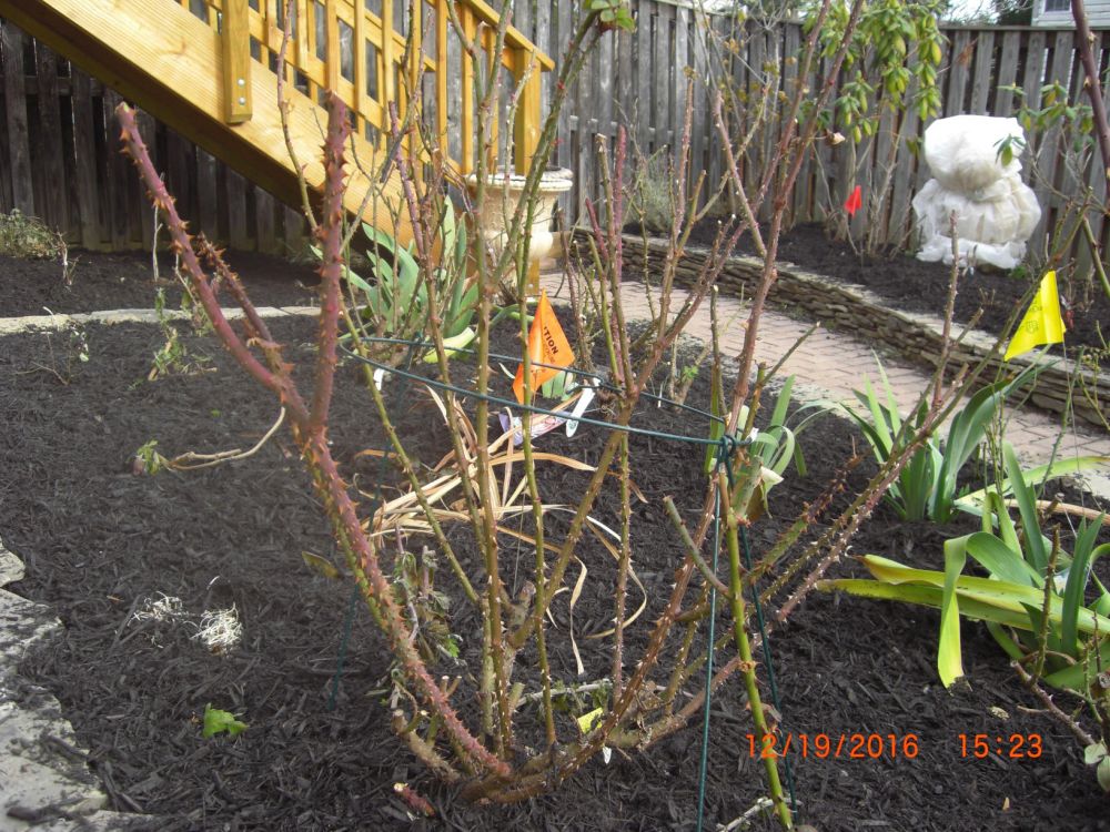 周末给所有玫瑰剪了枝,不舍得象录像上看到的那样下狠手,只剪了弱小的,再剪短些,剪掉所有叶子,即使如此,也剪了一大垃圾袋。今天请人给后院房侧都铺上mulch,就此花儿开始冬眠。希望明年花开得更多更美。