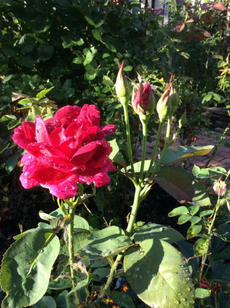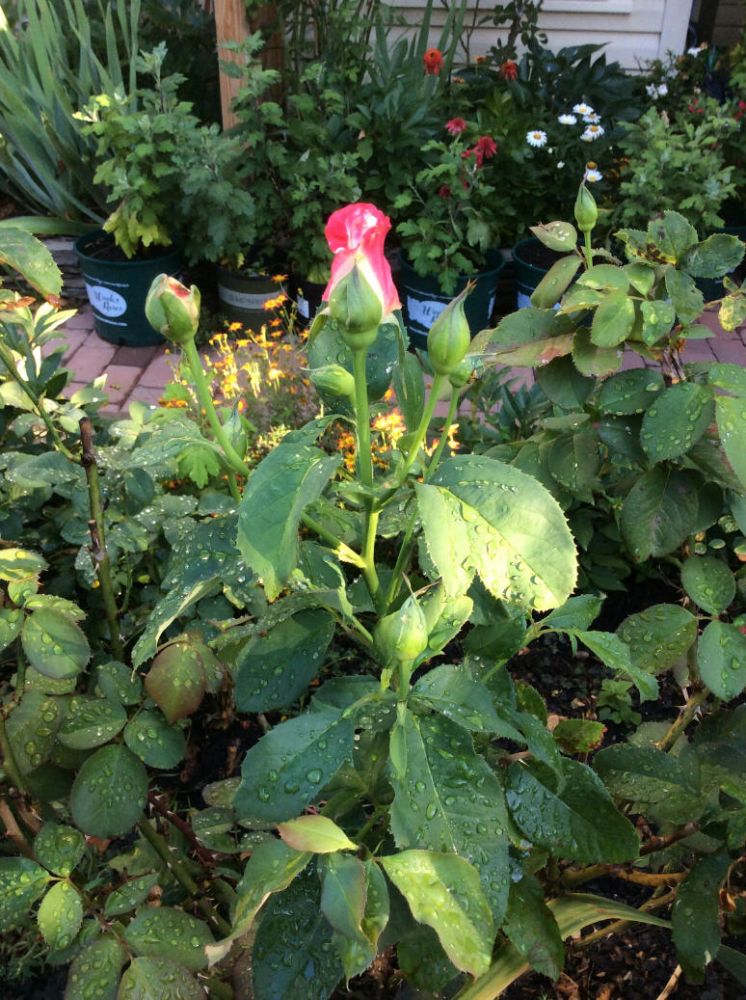 自从爬藤玫瑰开过,整园的玫瑰静悄悄的,现在开始结骨朵。