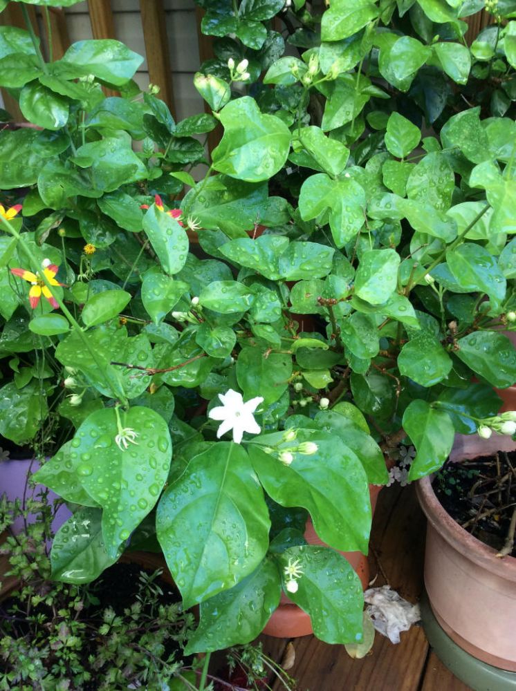 阳台上的茉莉正要开花,叶子本身就长得非常健康漂亮