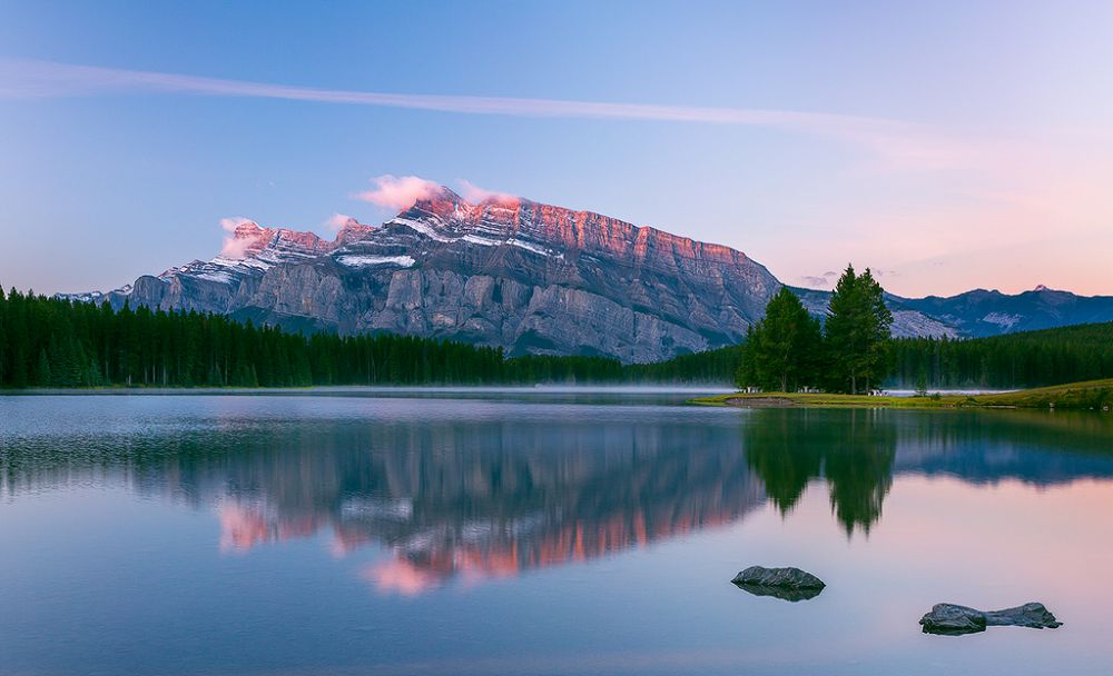 去年九月初趁劳工节长周末在加拿大班夫国家公园玩了五天,拍了不少, 好的不多,净是到此一游片,勉强挑出几张还算看得过去的拿来两张来灌水:) 这是在Two Jack Lake 拍的, 远山是Mt Rundll。被拍烂的地方,还任性的去拍,不管怎么说,孩子还是自己的亲哈:)