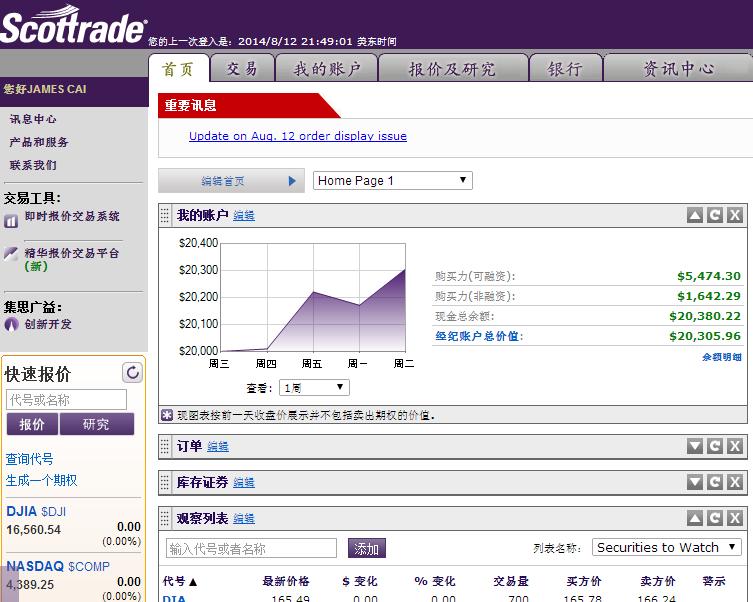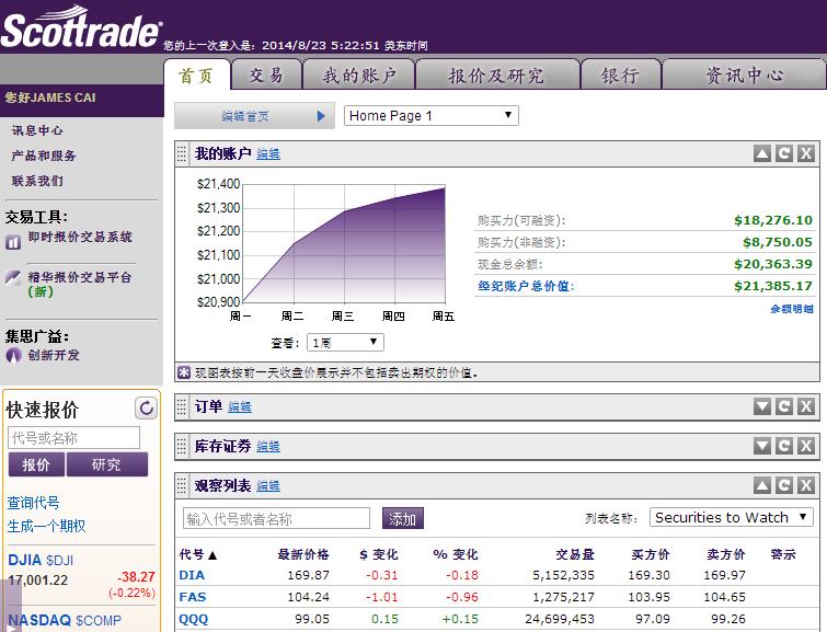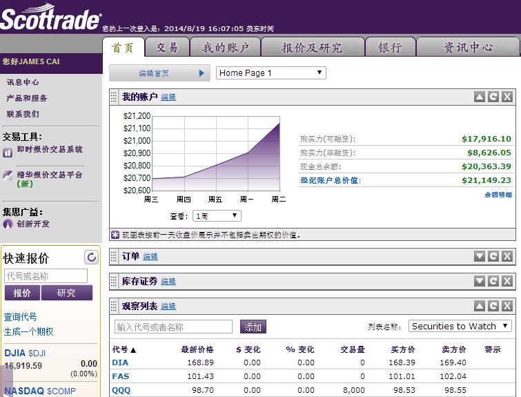 << 08/19/14 账户 第二周 >>