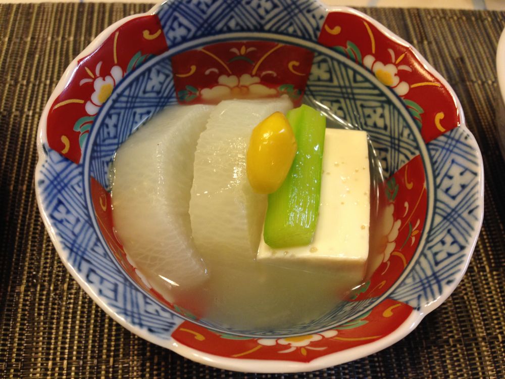 白萝卜豆腐笋杆黄金豆的鸡汤煮