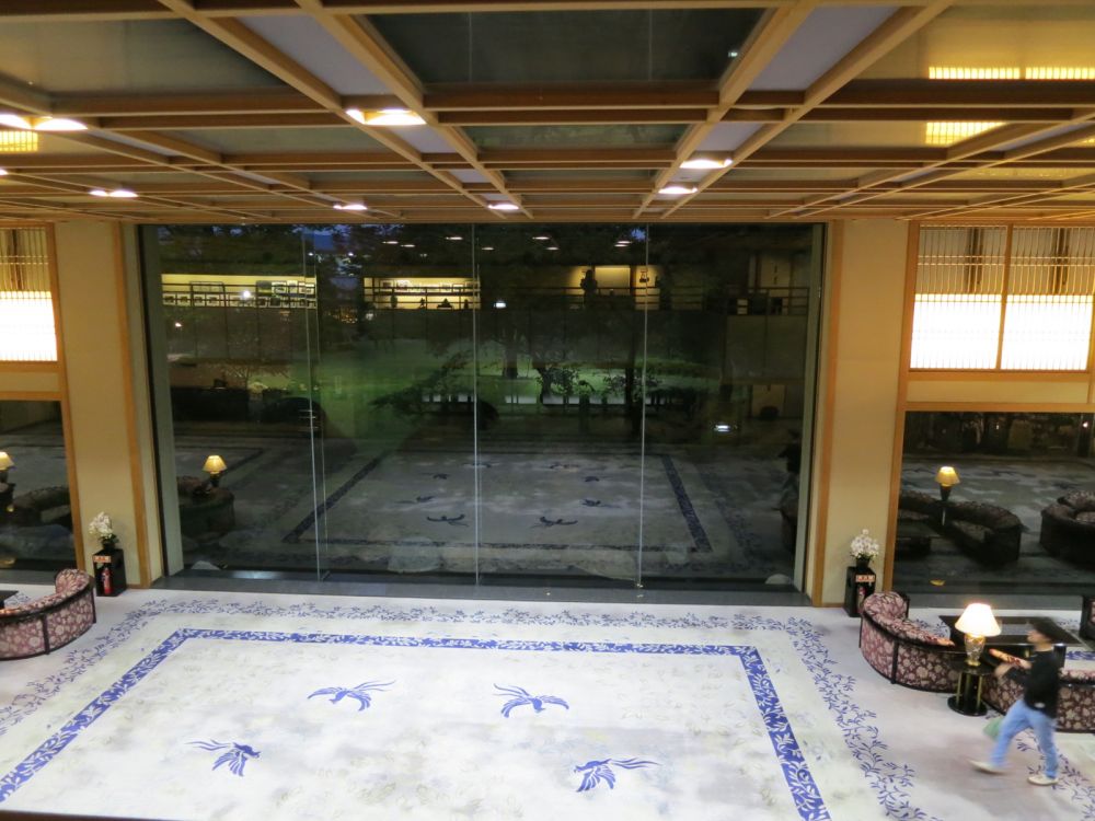 夕阳西下,去泡温泉时从二层路过大厅