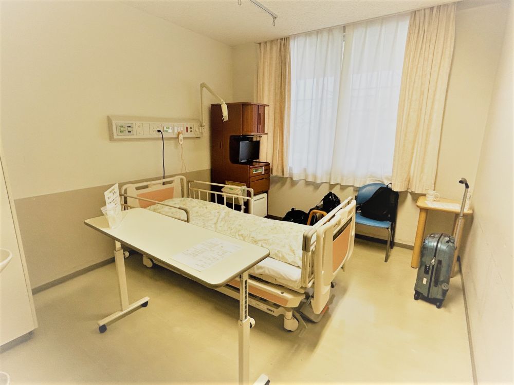 领导给我申请了单人间。最便宜的是4人间,每个床位由布帘隔开。单人间有带淋浴和不带淋浴的两种,不带淋浴的没有空房了,所以我就住了比较贵的带淋浴的单人间。事实证明领导的这个决定虽然费钱但很英明,因为我可以自由上网看油管,减少了很多孤独感。房间很旧但也够用了。