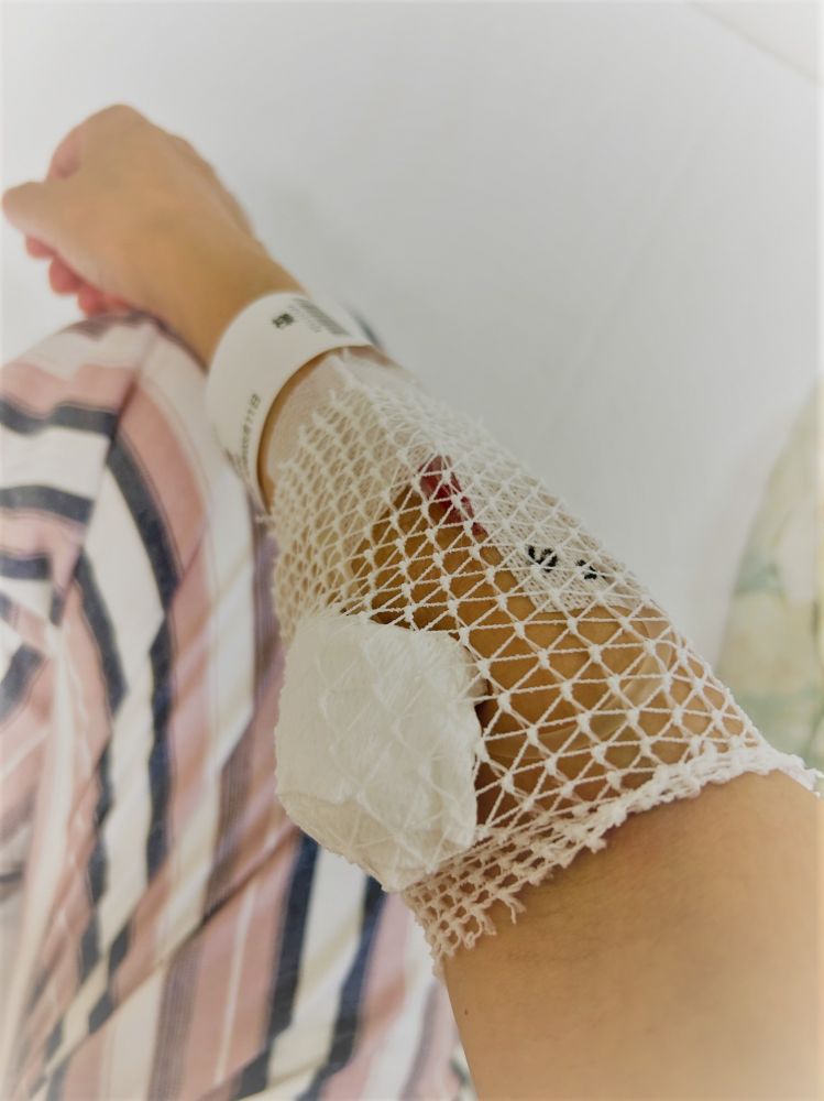 下午护士来埋点滴针,虽然第二天才开始打点滴。护士看到我的血管高兴地说很容易打。我想她平时面对的更多是老年人脆弱的血管。针埋得一点不疼,而且是让我换上睡衣以后才埋的,不影响睡觉。