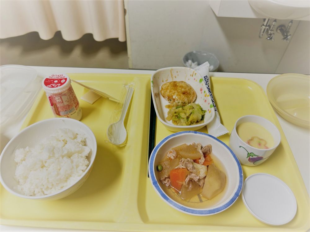 接着迎来了第一顿病号饭。黑色小碗里是肉菜汤。总的看起来比较寡淡,但营养也够了。米饭有点多,可是一想手术消耗体力,还是大胆地吃了多半碗。