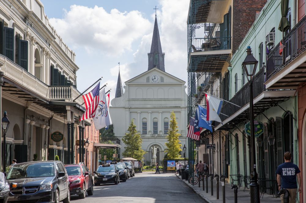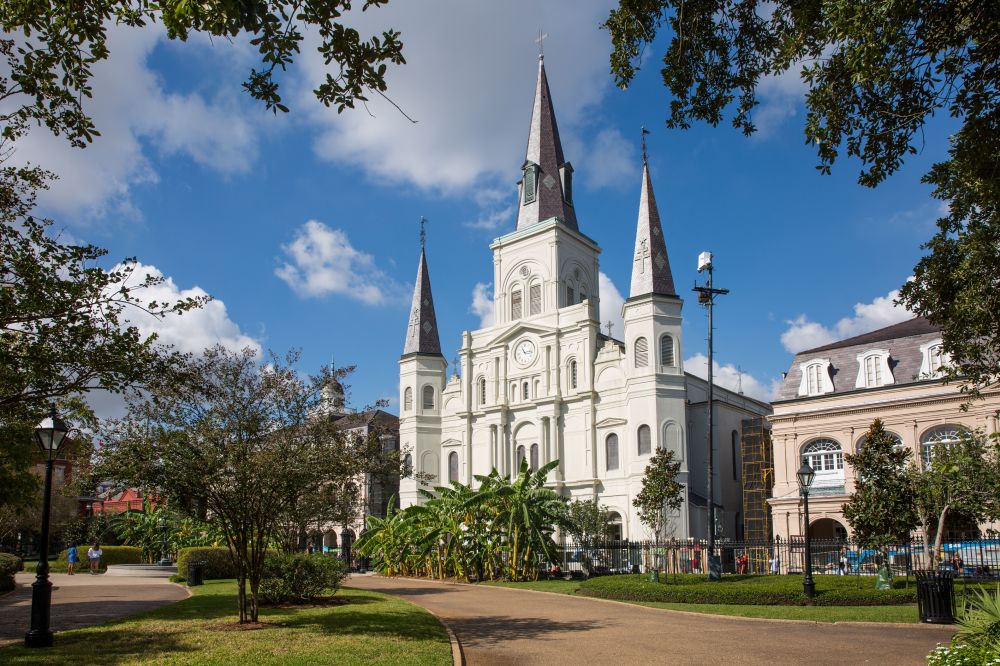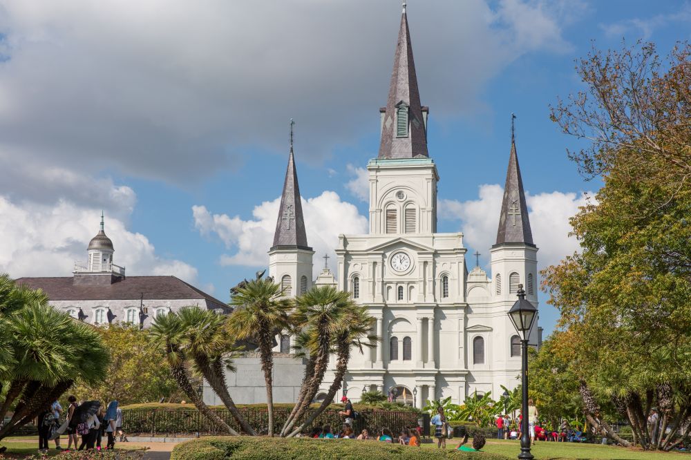 圣路易斯大教堂是新奥尔良的象征性建筑, 坐落在法国区的杰克逊广场上。