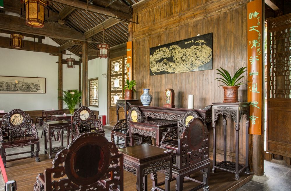外园正厅,取自香远益清之意。这里既可欣赏外园愚湖全景风光,又可领略内园假山绮丽景致。因门前屋后秀色宜人,饮誉金陵,当年李鸿章、曾国荃、张之洞等晚清名流慕名前来做客踏访雅聚,赏景赏月,吟诗题联。