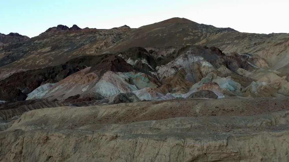 去Artist pallet 一定下午太阳斜斜时去,Artist pallet drive傍晚的夕阳光打在各种岩石上, 紫色像雾,绿色一团,蓝色流动。。。很美。注意山里太阳4点半就回家了,所以别太晚了, 我们4点半开出来, 有点晚, 一路只有匆匆欣赏, 意犹未尽, 第三天早上又去开了一回, 感觉大不如傍晚色彩变幻。