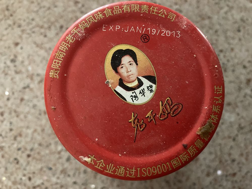 今天发现了一瓶古老的老干妈辣酱,N年以前搬家里忘了拿出来,打开闻了一下,居然一股的油辣香味一点都没有变质, 咱自己院子长的辣子做的油泼辣椒不到三个月都长毛了。这里头不知道加了什么。太神奇了。