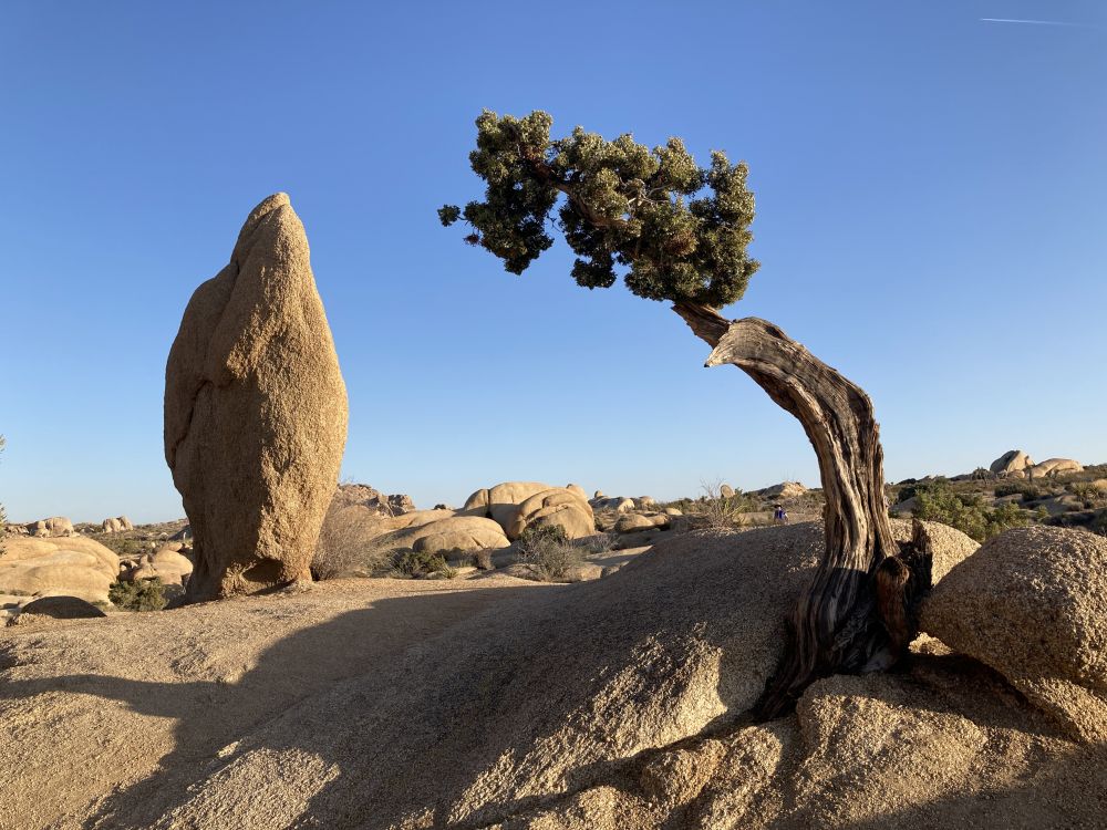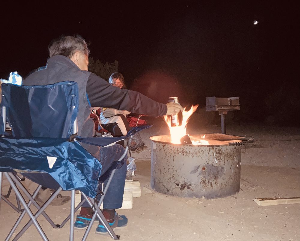 上周末又去了沙漠里的约书亚树国家公园Joshua Tree NP露营。这个季节营地爆满一位难求,好在本人持续搜索锲而不舍,总算没让远道而来的亲戚失望。他们人品好,所以运气也好!在那乱石丛生的不毛之地赢了个大满贯:日落奇峰,晚霞映树,满天繁星,日出沙漠(11),骷髅岩石(12),一网打尽。晚上燃起篝火,吃饭喝酒聊天,感受生活的美好(14)。细看图11,车上搭个帐篷睡觉比较酷的。再加个典故:这公园还与音乐有缘:30多年前的爱尔兰U2乐队有张唱片就叫Joshua Tree,得过格莱美Grammy大奖。