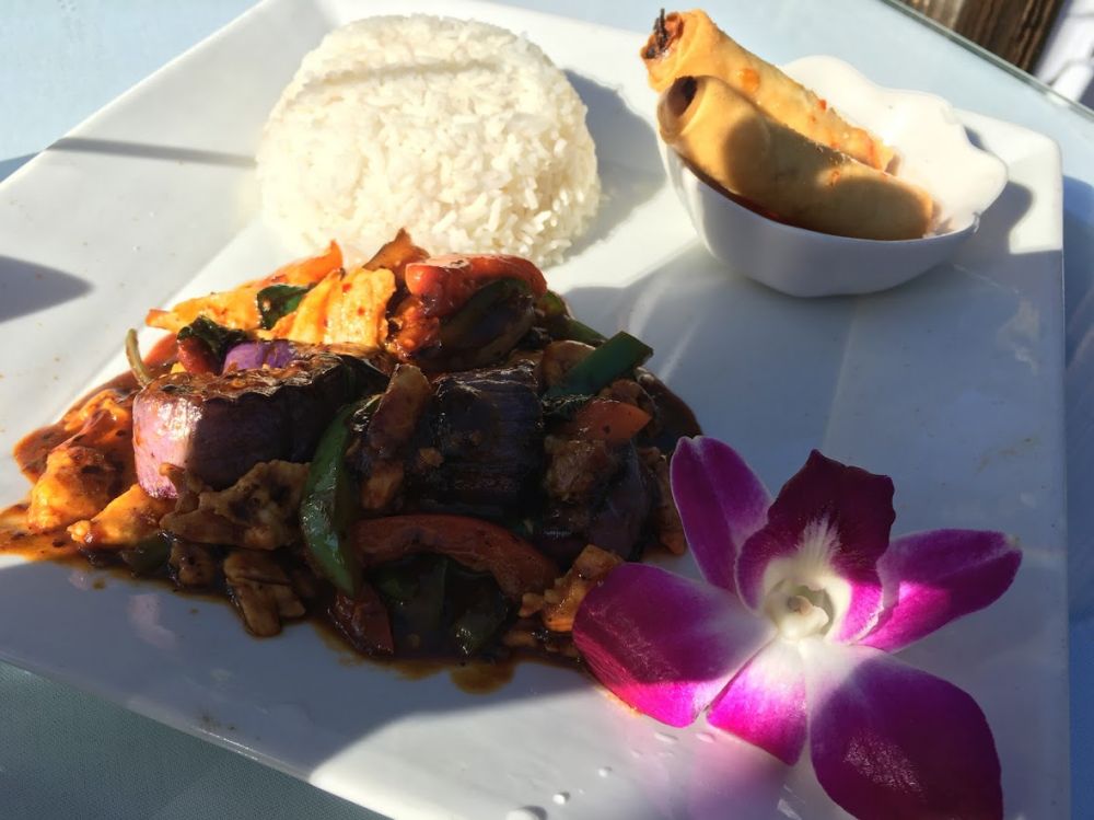 这是在海滨运河边上的花园式泰菜馆
