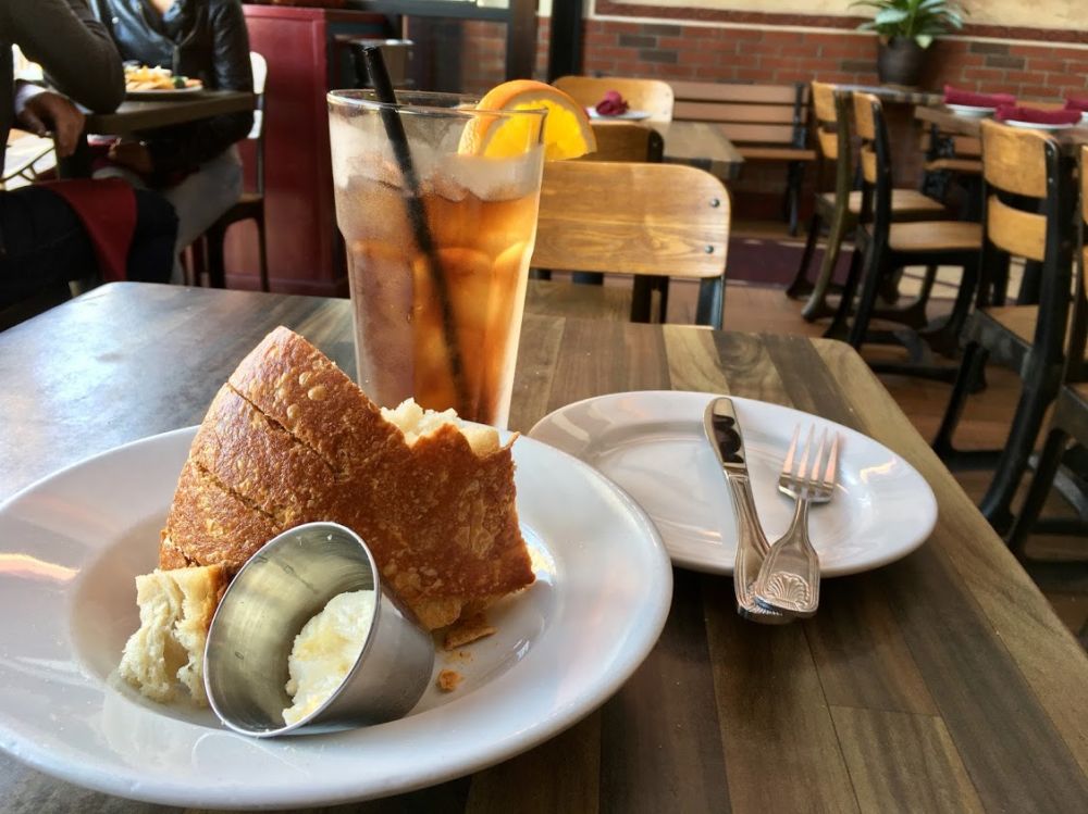 坐下后,服务生先上了冰茶和面包