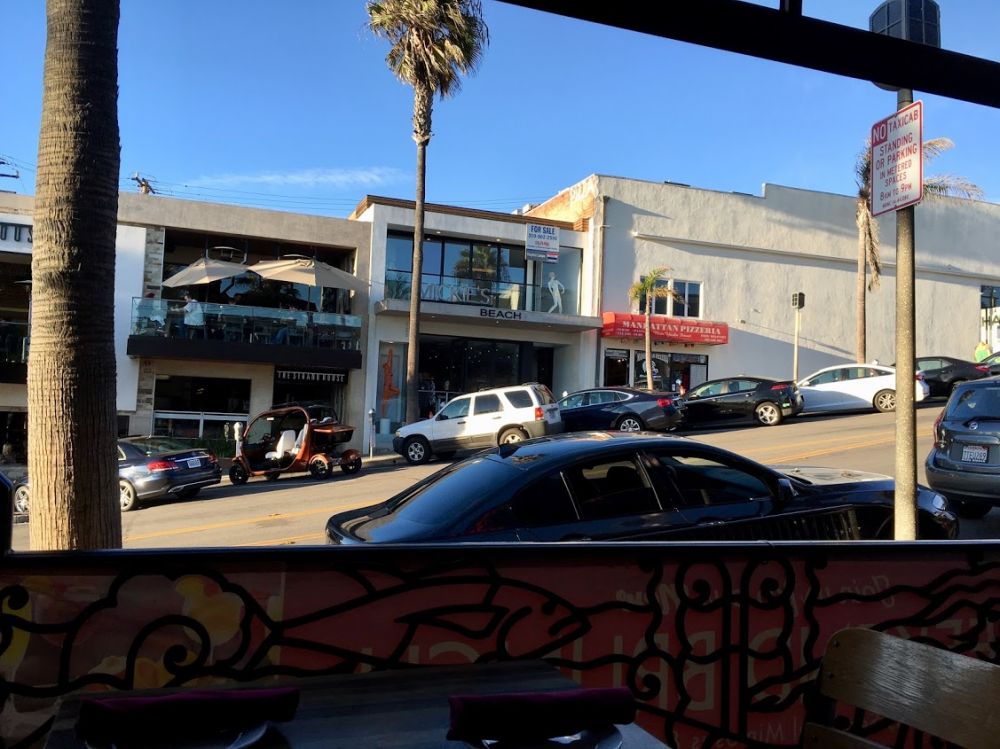 曼哈顿海滩的城市不大,在这里漫步有非常放松的体验,路边和广场上有不少糕饼店和饭店。