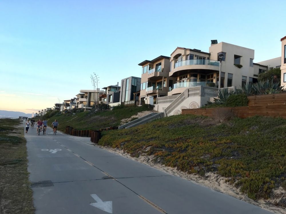 右手边是浩瀚的太平洋,浪击沙滩,涛声隆隆;而左手边是延绵不断的面朝大海的豪宅,这里的平均房价是三百万美金左右。住在这里的人出门就可以冲浪或打沙滩排球,据说奥运会的比赛项目 - 沙滩排球的诞生地就在这里!