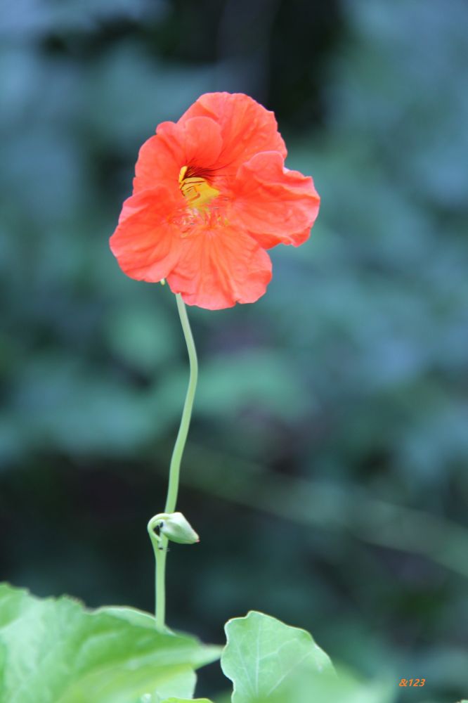 朋友给了旱金莲的种子,小园迎来了新成员。种子五月就下地了,今年雨水充沛,花芽发得很快,花苗长得也很快。一转眼间,有花蕾了,开花了,金灿灿的一片,配着小几号的荷叶,很是好看。旱金莲就这样开着,一朵接一朵的;而且每一朵的花期比昙花要长好久,好久。花蕾也不停地往外冒,有一种小荷尖尖角的气势。金灿灿的花儿很香,好似娇媚的色彩还不足够表达自己,还要用香的可人来增加着自己的价值。不仅如此,而且,旱金莲很好养,没有特别的关照,就开出芳香宜人,淡雅中带着娇艳的花朵!