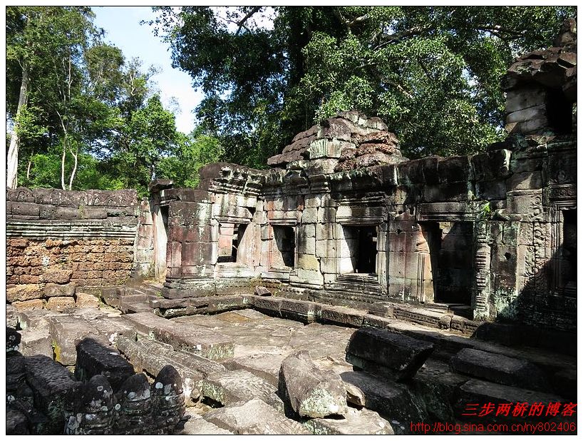 圣剑寺(Preah Khan),相传此寺是吴哥国王平时用来存放宝剑的地方,建于12世纪加亚拔罗曼七世时期,它紧邻吴哥城东北方,另一种说法相传该寺是加亚拔罗曼七世为纪念他父亲而修建的。