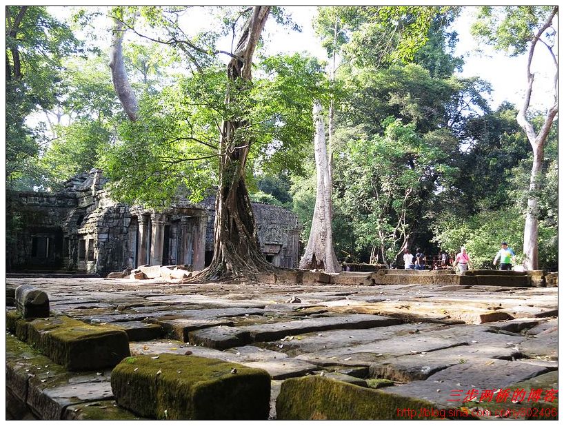 一般认为,由于吴哥王朝的衰落和首都南迁,都城内外森林日益繁茂,林中飞鸟遗下的鸟粪中含有某些不能消化的树种,落在塔普伦寺建筑的细缝中并萌芽成树,天长日久,相生相替,演变成今天的奇观。也充分体现了人与自然相互较量和相互依存的奇特关系。