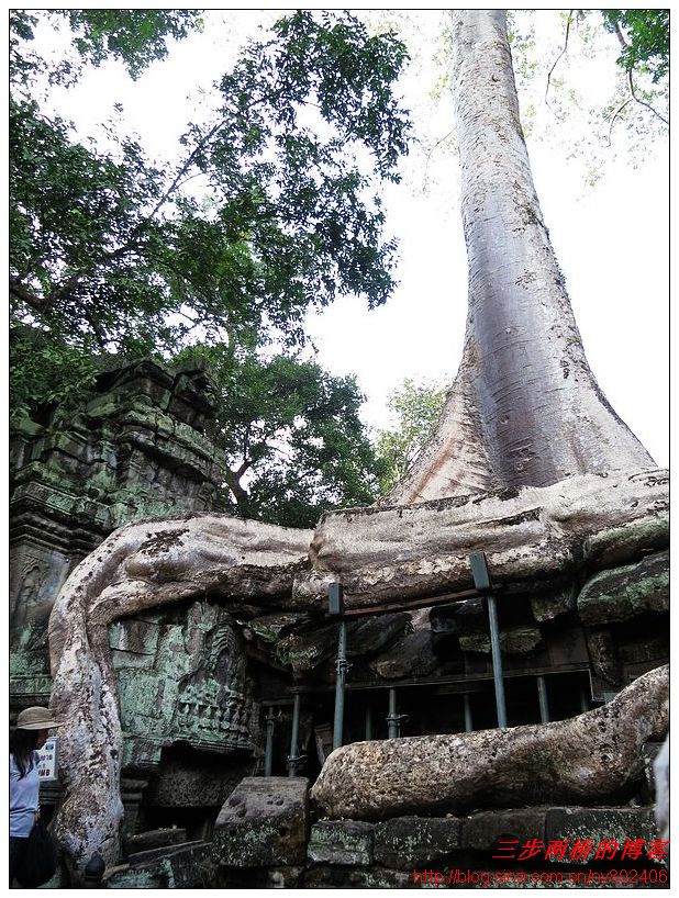 塔普伦寺(Ta Prohm)相传为吴哥王朝加亚拔罗曼七世于十二世纪末为其母所建。寺内建筑顶端、基底和夹缝中生长着许多数百年的参天古树,建筑塔群苍劲宏伟,林木枝桠丛生,树根盘根错节,包围和抱持着建筑,是吴哥建筑群中较具特色的景点,与吴哥窟和巴戎寺鼎足而立,成为吴哥古迹中最引人入胜的景观之一。