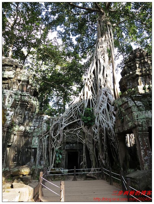 百年老树缠绕着千年奇石,彷佛爱恨纠缠般的浪漫。这里曾经是电影《花样年华》的取景处。