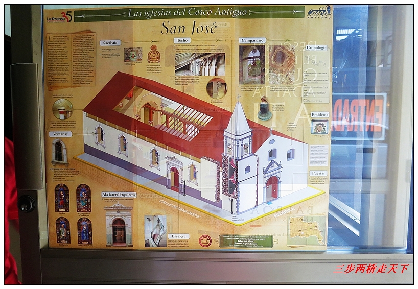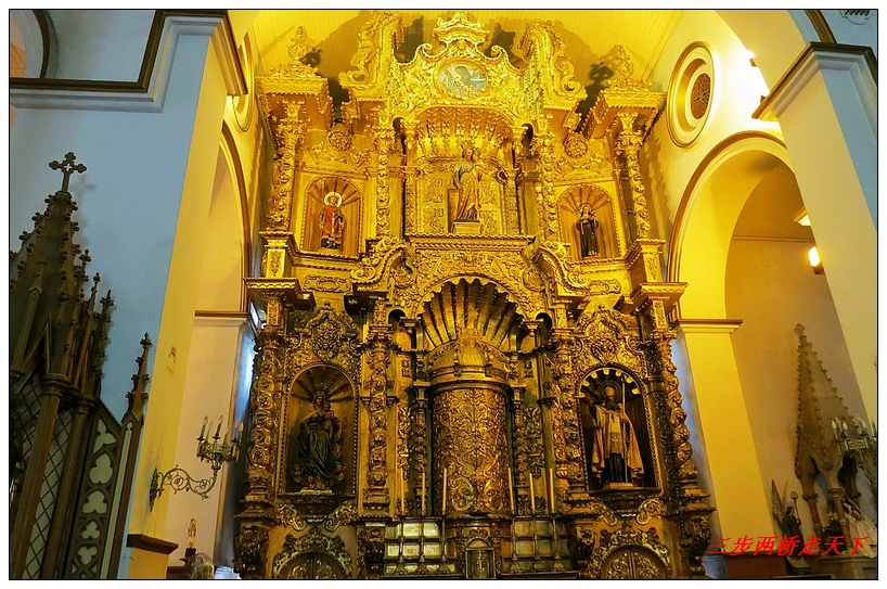 在巴拿马老城游览时,我们一直企图寻找老城中的San Jose Church,希望能亲眼目睹一下教堂中那块充满传奇,号称中南美洲最大的金圣坛。老城中的翻建工程差点让我们错过了这座教堂,几经周折终于在一片徒手架的背后找到了这座教堂。