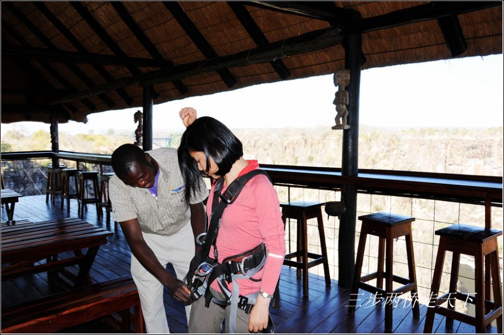 当年没有记下这些参数,这次记录一下。维多利亚瀑布大桥高128米,长198米。这么说,我跳峡谷的准确高度也应该是128米。