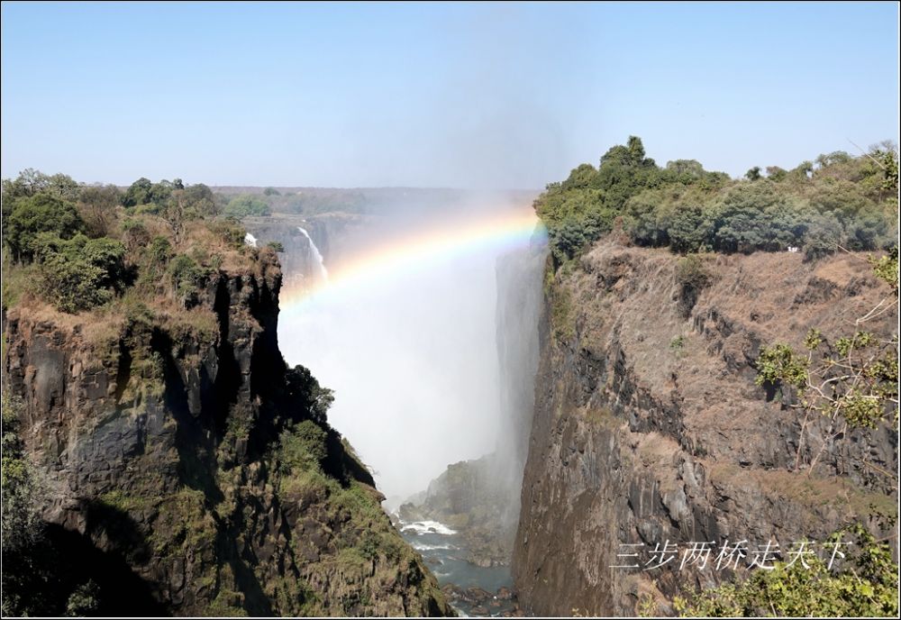 因为维多利亚瀑布一般午后会出现更多的彩虹,于是,在上午的时间里 我跨过维多利亚瀑布大桥,进入赞比亚境内,重访了我从120米高的峡谷纵身跳下去的地方。