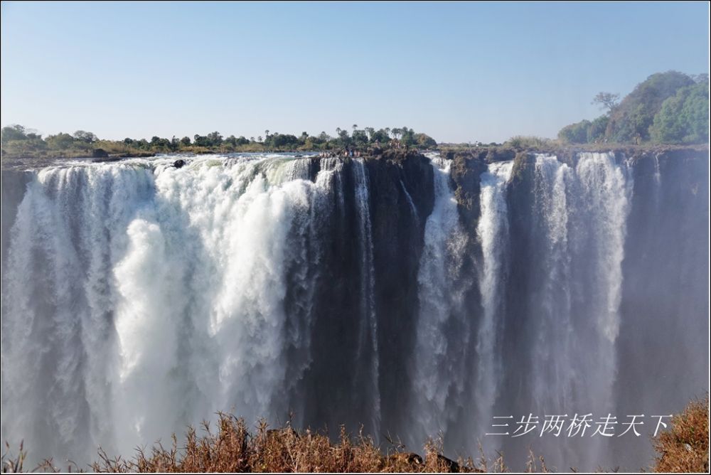 从128米高的峡谷上奋力跳向涛涛奔流的赞比西河。