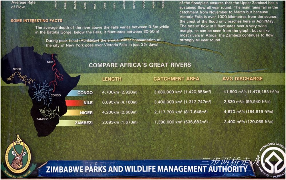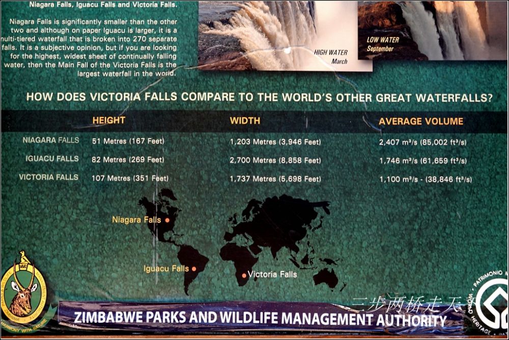 这是我第二次来到维多利亚瀑布。第一次是七年前,当时正是非洲的雨季,也是大瀑布每年水量最大的时候。当我们走近大瀑布时,正像给大瀑布冠名的英国探险家李文斯顿(David Livingstone)所描写的那样:“……除了一团白色云雾之外,什么也看不见。”(详情,见当年游记【初识非洲】)。这次特意选定了在非洲的旱季重返大瀑布,希望能一睹大瀑布低水位时的风貌。