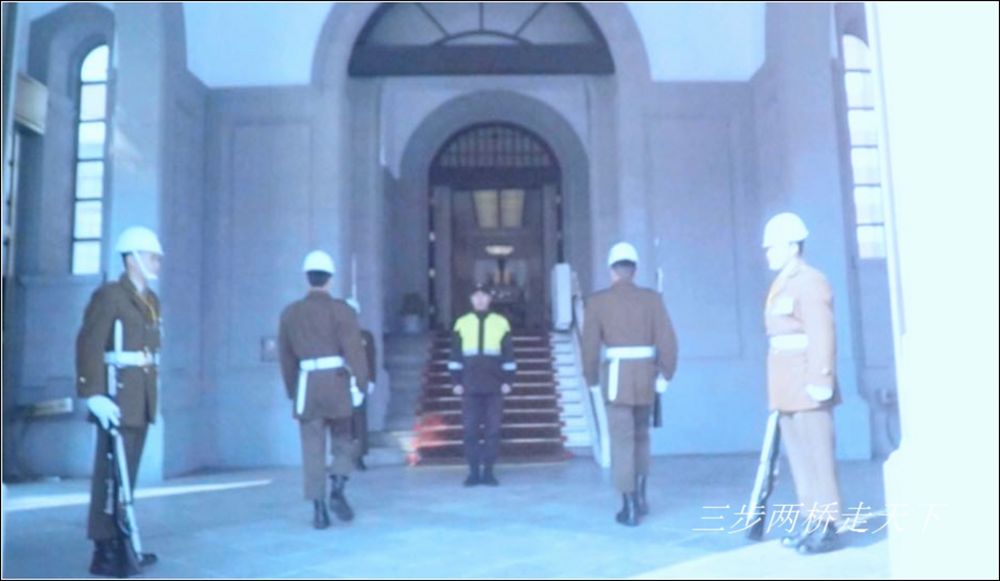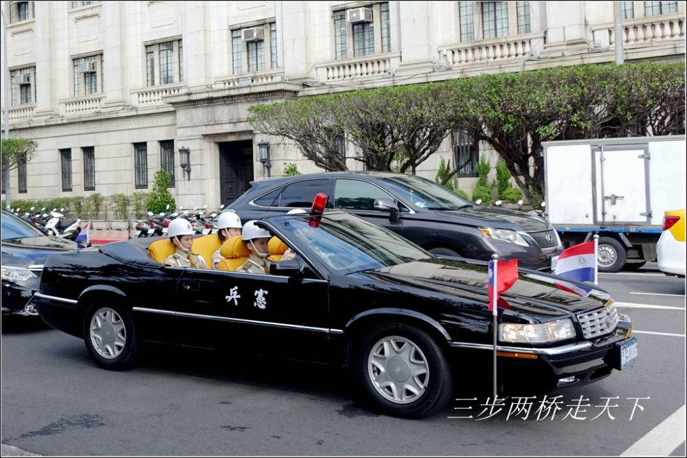 抵达总统府已经是10点多钟了,正好遇到宪兵车队路过。从第一次在中正纪念堂见台湾宪兵就觉得好笑,一个个单薄僵直的像玩偶,很难想象这些兵娃子能打仗。