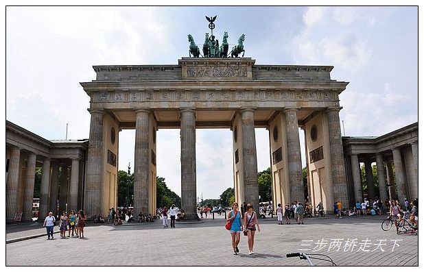 这是一处具有几百年历史的古迹。事实上,它是拿破伦时期柏林13座城门中唯一完整保存下来的一座,古希腊神殿风格的六根巨柱上方,是扬名世界的双轮四驾马车雕塑。然而,它对于德国人的意义,远不止这些。