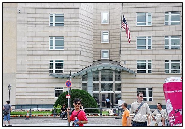 紧贴勃兰登堡门一侧的戒备森严的美国大使馆。那位置绝对是黄金的,只是从地理位置上说已经属于当年的东柏林了,好像有那么一点像是历史开的玩笑?