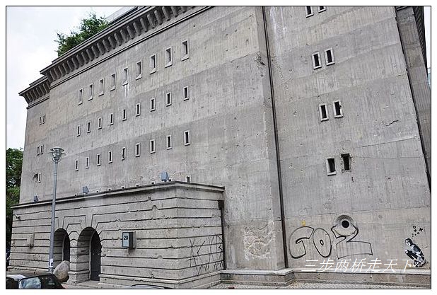 这些是希特勒时期建造的建筑物,与以玻璃材料为主的现代风格建筑物形成了鲜明的对比。