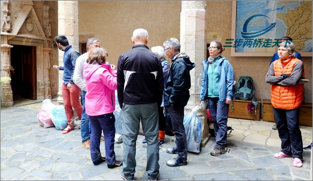 不过我今天在孔克算是铤而走险了。我两三天前就发现,从Estaing到孔克沿途的招待所,甚至包括Booking上$100以下的床位都全部预定完了。昨晚招待所住进两位来自巴黎的小路友。聊天时我问他俩明天住哪里?他们告诉我,一个月前就预订了一家在孔克的招待所。当他们听说我一直没能订到床位后,若有所思。不一会儿来对我说,我们刚刚帮你确认了,孔克修道院的招待所每天会保留10张床位给没有预订床位者先到先得,建议我不妨试试运气。从Estaing到孔克至少35公里的距离,要想抢前10名几乎不可能。于是他俩又和我一起探讨各种可能性,终于发现,我可以走一半,另一半路上正好有公交车可以搭乘。