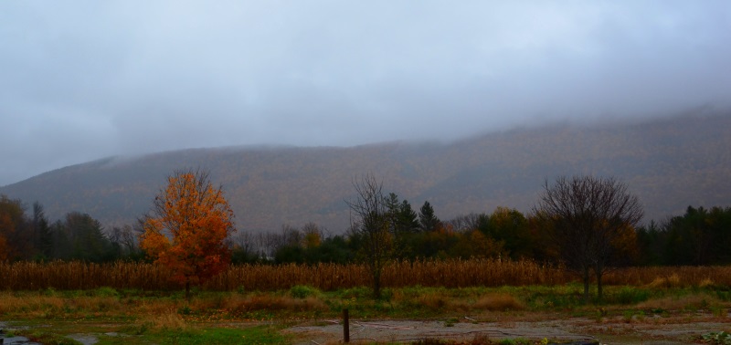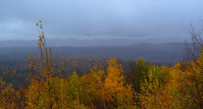 翻过一个山头,突然风雨交集,远处云雾缭绕,很想把那种朦胧飘逸感拍下来,可拍出来却是一片模糊,而那份云里雾里的体验,在内心翻滚却表述才尽词穷。不是只有阳光下金灿灿火焰焰的枫叶才是美景,自然界的每一种现象都有她的灵性,就等着你我去观看,去感受。