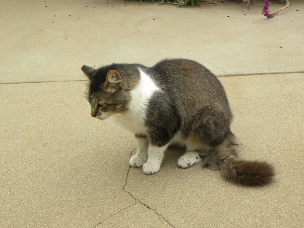 大旱了三年的加州,今年雨水丰沛,像是要给我们补回来。通常滴雨不落的八月,有天晚上竟然飘洒了濛濛细雨。我把车库门打开召唤伴伴,她大摇大摆地进来,跳到一张折叠椅上落座。车库里有鸡食,我不想让其它动物进去,就把门关上了。伴伴静静的,没有闹着要出来。第二天早上我一开门,她就跑出来,到土地上出恭。我去买了猫砂,还买了猫罐头作为特殊奖赏。伴伴肯定曾是家猫,她一听到我开罐头的声音,就过来围着我转,仰着头,渴望地看着我,显然知道那是好吃的。