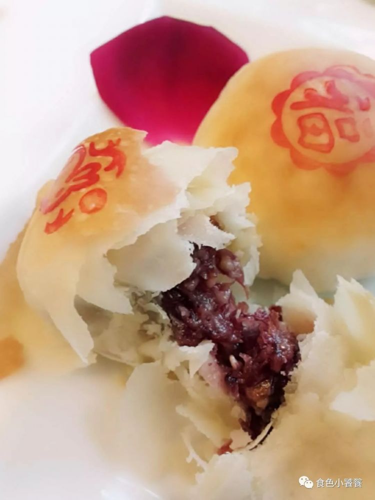 掰开看看里面的玫瑰馅,哎呀!酥得掉渣,饼皮纷纷碎落
