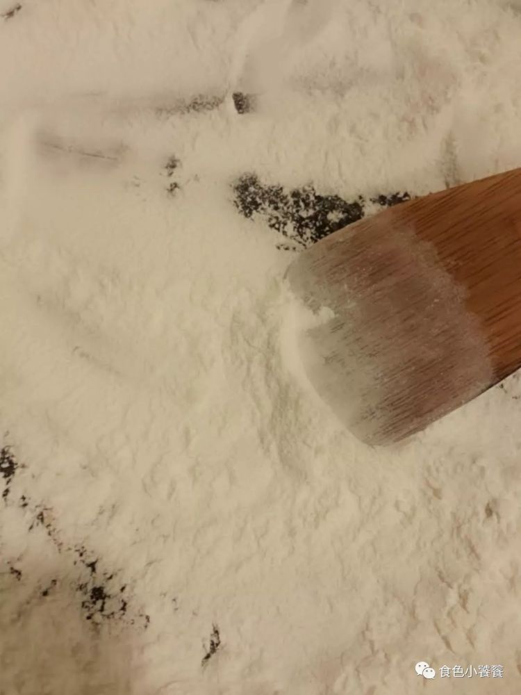 炒熟糯米粉。炒熟的糯米粉轻盈,尝之没有生粉味道。