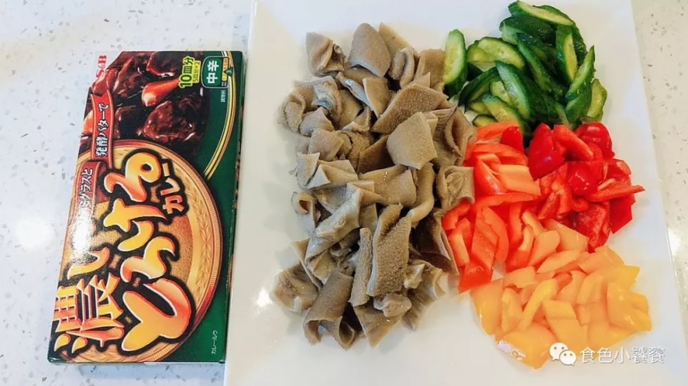 煮熟的羊肚,彩椒,黄瓜 (可随意),日式咖喱