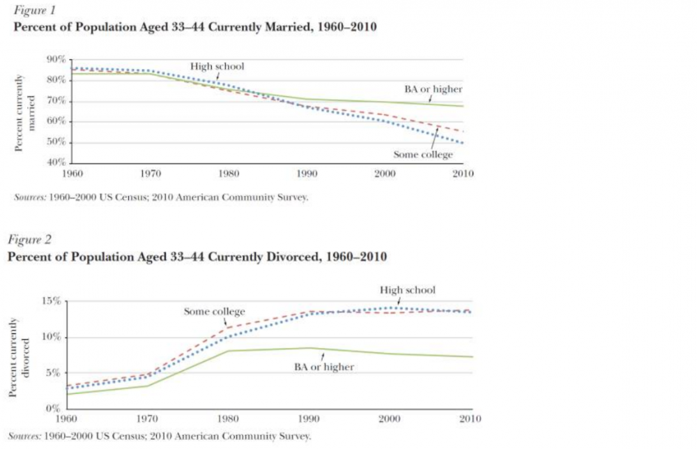 2。受过较高教育的提前达到某个level,并保持。如果文化程度较高代表将来的方向,那么婚姻趋于稳定会是将来的趋势(虽然其level可能会不同)。