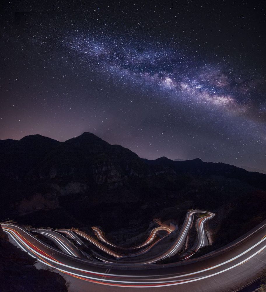 筹划拍这张片子大约2周,在月相和星空都适合时,在晚11点到达位置,借助星空App等待至凌晨三点,看见银河从山体后升起。自己开车跑出车轨。全程我的金毛-roman一直陪伴着我。
