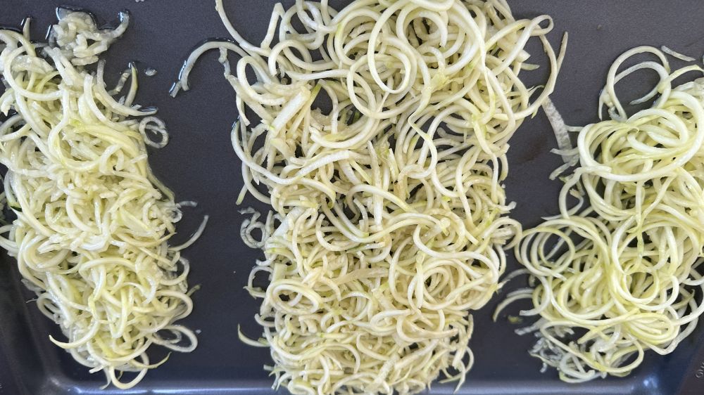 这个小工具操作很简单,有了它太方便了,手工无法切长条。你家西葫芦成熟了可以试试,我的感觉,也许不要放thyme更好些。