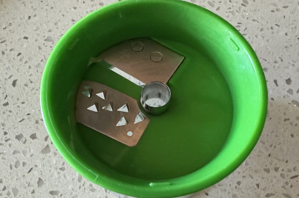 4)另一面这样,将西葫芦一头插入中间的孔,然后将西葫芦旋转即可得到面条,非常好用。